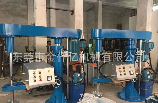 我们的高速分散机有两种安装形式,一种为落地式,,适用于配合可移动的漆浆罐。另一种为平台式,安装在楼层或钢平台上。由于机头可以升降并能旋转,所以一台高速分散机可配2~4个固定容器,轮流分散搅拌。分散机主要由机身,传动装置,主轴和叶轮组成。机身装有液压升降和回转机构。主轴回转速度有单速、双速、三速及无级调速。无级调速采用调速电机调速和变频器调速。